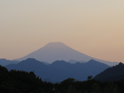 大きな道に出てしばらく歩く。富士山が暮れかかった空の下に再び姿を現す。やっぱり絵になる。