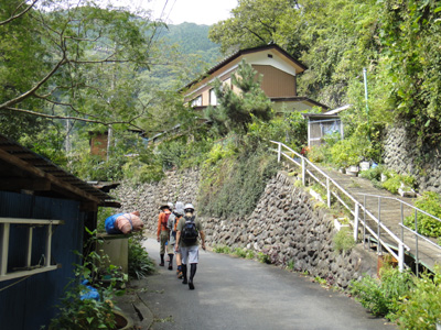 さて、身支度を終え、水根沢林道に入って歩き始める。10人くらいの沢グループは、まだ駐車場で準備をしている。よく見ると女性も半分くらいいて、初めて「山ガール」ならぬ「沢ガール」というものを見たことになる。
