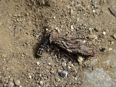 玄関先の砂の上にミノムシが落ちていた。どこからやってきたのか知らないが、砂の上を、みのから半分体を出して、なにやら蠢いている。何をしているのだろう?