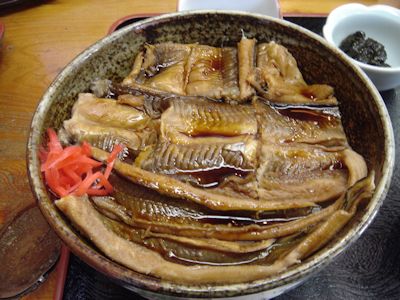 富津名物、はかりめ丼(アナゴ)。富津市いそね寿司にて。 |