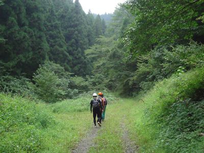 林道を早足で歩く。途中で、沢で打ち付けた左膝が痛くなってくる。沢でのアドレナリンが切れたのだろう。帰りは下りなので膝に堪える。