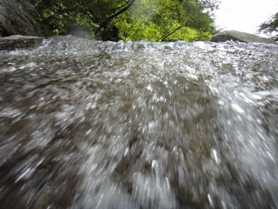 ナメ滝。水の勢いが激しすぎて登れない。 |