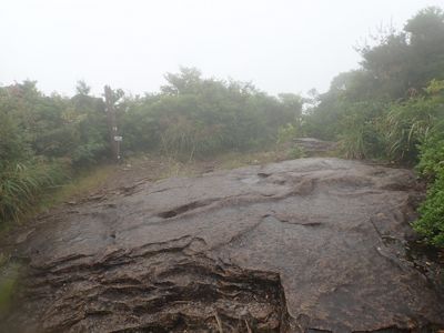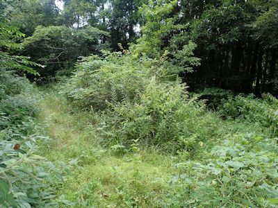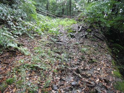 完全な廃林道で、道の全幅に渡って草が生え放題のところも多い。時には背丈以上の草が生い茂っている。草をかき分けて進む。