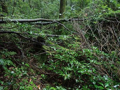岩屋林道は廃道化していて、草が生え放題で所によっては藪漕ぎとなる |