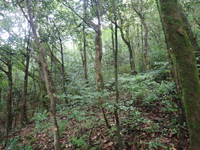 堰を左岸側から森を登って超える。