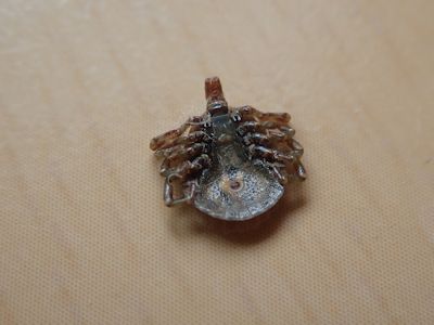 死んだふりをする小さなダニ。8本脚。 |