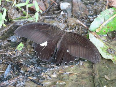 少しくたびれたモンキアゲハが地面に降りている(宮崎県串間市) |