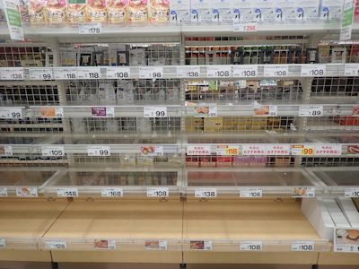 パンの棚に行ってみると、いつもはパンであふれかえっている棚に、一つもパンがないではないか!