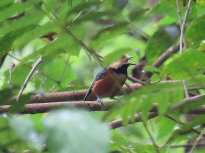 ヤマガラが盛んにさえずる。珍しく手前の枝葉にピントが合わずに、