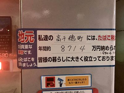 ところで、右の写真は、高千穂のたばこ自販機に貼られており、今週の五ヶ瀬出張の際に撮ったものである。