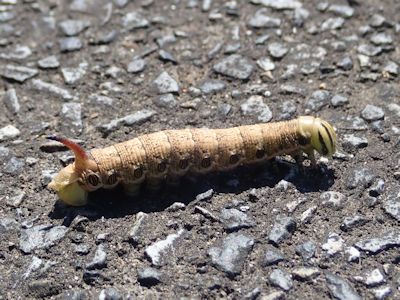 エビガラスズメ(多分)の幼虫がコンクリートの地面を