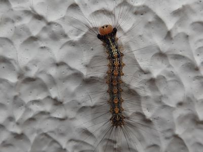 5月、マイマイガの幼虫(多分)が壁を這っていた (宮崎県串間市) |