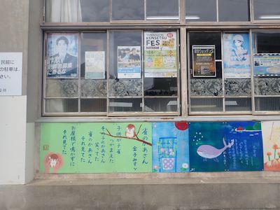 役所の壁には金子みすゞの詩がイラストともに描かれている