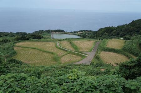 東後畑棚田。ため池も見える (山口県長門市仙崎) |