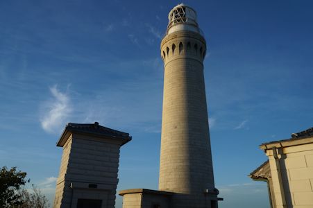 角島灯台。石造りの趣のある灯台 (山口県下関市) |