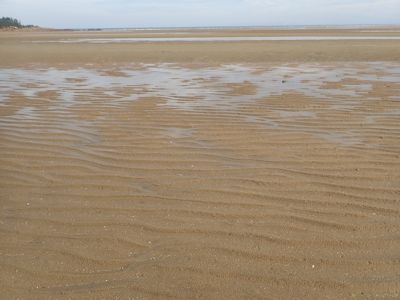 昨日の干潟が跡形もなくなり、一面、海が満ちている。普通に波が砂を洗っている。これほどまでに景色が変わるとは。