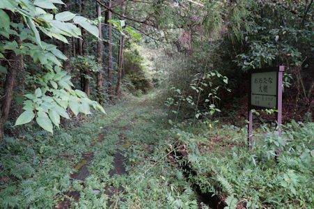 廃線となった船木鉄道のトンネル。森の中にあり、趣がある。大棚駅の看板も残っている。