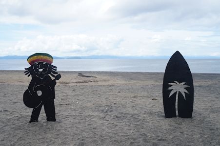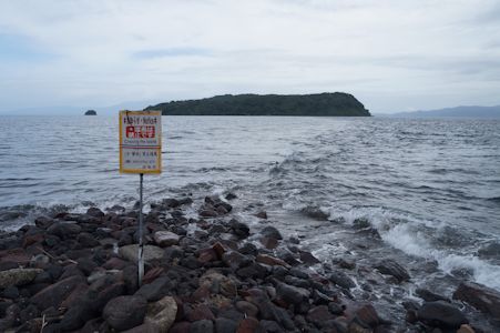 志布志に戻り、いつものように大浜緑地公園の芝生で、テントを広げて乾かす。今日も恐るべき高温なので、乾かすにはいい日和だ。