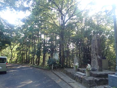 そのあと、車で10分くらいのところにある和田越決戦地跡へ。森の中の林道沿いに、大きな石碑が立っている。
