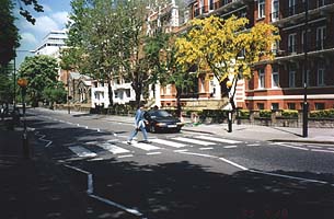 そして、アビーロードへ。アビーロードは、知る人ぞ知る、ビートルズがレコーディングに使っていたスタジオがある場所で、実質的なラストアルバム「アビーロード」のジャケットは、アビーロードスタジオ前の横断歩道を、ビートルズの4人が渡っている写真である。その横断歩道を渡るために、私もわざわ