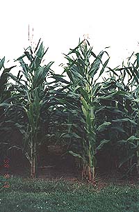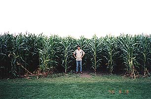 | シューレス・ジョー・ジャクソンばりに トウモロコシ畑から出てきた私 私がここを訪れた8月は、トウモロコシが 目いっぱい育っている季節。 その高さは、2m以上。 |
