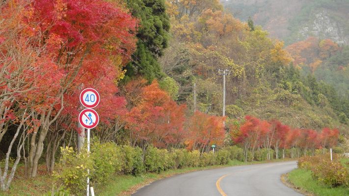 紅葉のカーブ (福島県田村市滝根町)