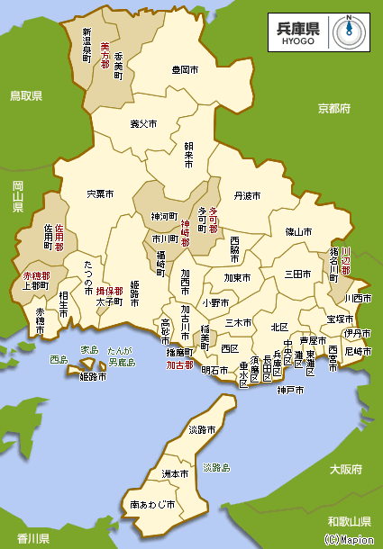 兵庫県 南部は神戸、姫路等都会があり、中部から北部は田園と山間風景が広がる。 市町村名をクリックしてください ■神戸市 ■尼崎市 ■宝塚市 ・阪神競馬場 ■養父市 ■姫路市 日本の正しい田園風景 (養父市)