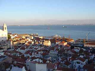 28番の名物市電でグラサまで行く。市電は、その幅しかないような狭い道を右に左に急カーブを切りながら走る。窓から手を伸ばせば建物の壁に届きそうである。ガタガタ揺れる感じからも、花やしきのジェットコースターを彷彿とさせる。グラサが市電の終点。坂道を歩いて登り、リスボンの街を一望できるセニョーラ・ド・モンテ展望台へ。白い細かい石を使った石畳。黒い石で模様がデザインされている。リスボンのマークだろうか。