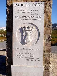 岬には、「ヨーロッパ最西端」の碑が経っている。高さ5m位の碑には、頂に白い十字架を乗せ、カモンイスが詠んだ詩が刻まれている。