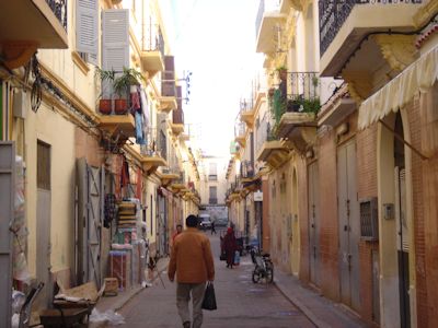翌12月29日土曜日。タンジェは快晴。朝8:20起床、タンジェのメディナを散策する。メディナとは、モロッコの街の旧市街のことで、通常モロッコの古い町は、アラブ人が進入してきたときに作られた街で、城壁に囲まれた要塞都市となっている。この城壁内部の街をメディナと呼ぶ。モロッコのほとんどの街は、このメディナ(旧市街)の周りに、19世紀以降新しく建設された新市街が存在するという構成となっている。タンジェのメディナでは、白い四角い建物が、地中海の陽光と青空に鮮やかに映える。白い建物が多いのは、ジブラルタル海峡を隔てた対岸のアンダルシア地方に影響されているのだろうか。