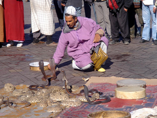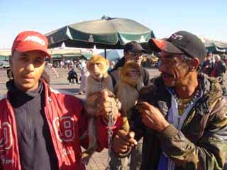 昼間のフナ広場には、大道芸人のグループがいくつも出ている。一番多いのはやはり蛇使いや猿回しの軍勢だ。