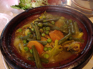 昼食はもう病み付きのタジン。香辛料の味付けがたまらん。