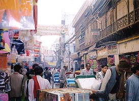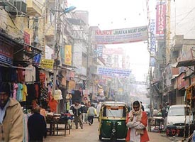 オールドデリー地区は、16〜17世紀、ムガール帝国時代に首都があった場所で、イスラム教の史跡が残っている。そして、デリー庶民の繁華街、チャンドニー・チョウクは、ありとあらゆる品物を扱う店、食堂が集中し、それこそ身動きもできないほどの数の人々が行きかう。衣類、日用品、花屋、宝石店、生鮮食料、菓子店。雑踏の中を、サイクルリクシャーがやかましくベルを鳴らしながら道をこじ開けていく。デリーの人々のエネルギーを最も感じる場所だ。