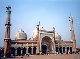 私は、ムガール帝国時代の巨大なモスク、ジャマー・マスジッドにまず向かった。入り口で靴を脱いで、中に入る。人は少ない。インド人の大多数はヒンズー教徒であるので、祈りを捧げているイスラム教徒の姿はまばらである。