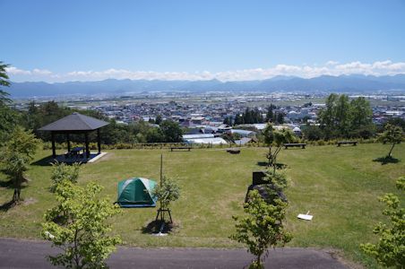 寒河江公園。高台にあり、寒河江の街が一望できる(山形県寒河江市)