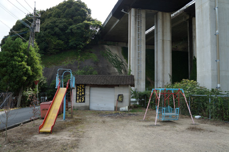 高速道路下の公園でオレンジジュースを飲む。美味い。この公園が怪しい魅力満載だ。滑り台とブランコ。上を見上げると高速道路。家は何軒かポツンポツンとあるが、子供はここで遊ぶのだろうか。夜なんかはかなり怖い雰囲気だろう。