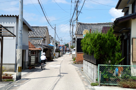 駄菓子屋があったと思われる方に歩いてみた。そこは今でも古い街並みが残る「長崎街道」と呼ばれる旧道で、車一台分しかない道幅だ。ヘルメットをかぶった自転車の中学生が行き過ぎる。記憶をたどって駄菓子屋のあった辺りまで歩いてみたが、跡形もなくなっていた。だが、確かに古い商家がところどころにあるのは、当時のままである気がしてくる。