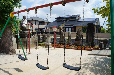 川の周りにはどう見ても昔からありそうな地蔵院という、大小の地蔵が何体も鎮座している公園がある。ここにあるブランコが当時からあるとすればきっとここで遊んでいたのだろうが、記憶が薄い。何となく見覚えはあるが、それ以上の脳内化学反応は起こらない。周りの風景が変わり過ぎているせいもあるだろう。