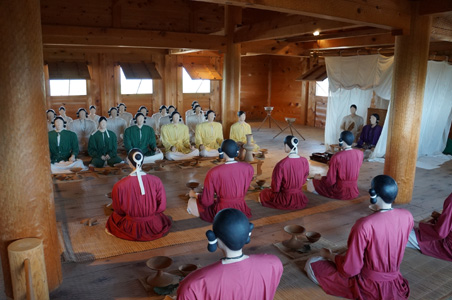 園内各持ち場担当のスタッフさんたちは、弥生時代をイメージしているのか、作務衣のようなゆったりとした衣装をまとい、輪になって朝礼をしている。今日のイベントとか、連絡事項が伝達されているのだろう。そして、「今日もがんばりましょう」と園内に去っていった。