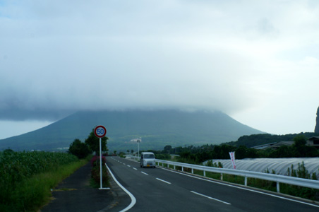 開聞岳は相変わらず上部に雲がかかっていて、美しい円錐形の稜線は見られない。結局今日は一日開聞岳は雲に包まれていたことになる。