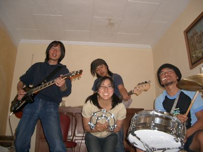 エクアドルにヤマトロック魂をディープインパクトすることを目的に結成。 のち、パウテ隊員だった後藤がヴォーカル、タンバリン少々として加入。 主にブルーハーツや少年ナイフのカバー。 ホームグラウンドはクエンカの室崎宅。週末に集まり、バンド練習やった後麻雀、というのが定番。 2005年12月、吉田の任期終了とともに活動停止。 <メンバー> 吉田:ヴォーカル、ギター 室崎:ドラムス、ヴォーカル 両角:ベース、ヴォーカル 後藤:ヴォーカル <メンバー紹介> 吉田:メンバーの中で唯一のバンド経験者。15年度2次隊。クエンカの職業訓練校で働く。電子機器隊員。 室崎:映画『スイング・ガールズ』に触発され、クエンカでサックスを始めるも、あまりの難しさに断念しドラムスに転向。14年度1次隊。クエンカの縫製学校で働く。婦人子供服隊員。 両角:一見クールでとっつきにくそうに見えるが実は気さくで面白い。15年度2次隊。吉田と同じ職業訓練校で働く。自動車整備隊員。 後藤:クエンカからバスで1時間ほどの街、パウテでおばちゃんたちに洋裁や料理を教える。15年度2次隊。家政隊員。 <バンド名由来> バンド名の「ラ・ぼんち」とは、オリジナルメンバーの3人が働いていたクエンカに関連する。 クエンカ(Cuenca)というのは、スペイン語で「盆地」という意味があり、さらに女性名詞であるので、ラ(La)という定冠詞が付く。 これらを総合し(笑)、ラ・ぼんちと相成ったわけである。 |