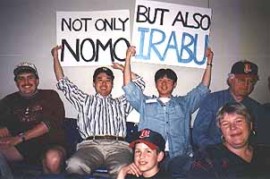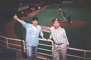 | 一塁側内野席で、伊良部を応援した。 周りにいたミネソタのファンは、ほとんど伊良部のことを知らなかった。「あのピッチャーは誰だ?」って感じ。私は、一生懸命「伊良部がいかにいいピッチャーであるか」を説明してあげた。 だが、前列にいた熱狂的なヤンキースファンのおじさんは、僕らに話しかけてきて、「奴(伊良部)は実にいいピッチャーだ。」と褒めていた。 |