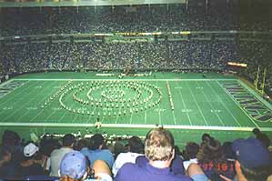 | 冬は、アメリカンフットボールNFLのミネソタ・バイキングスの本拠地となる。 アメリカンフットボールの客層は、熱狂的な若者が多い。彼らは、ひいき選手のユニフォームを着て、絶叫しながら応援する。野球の観客は、親子連れが多いのと対照的である。 写真は、ハーフタイムショーの模様。 |