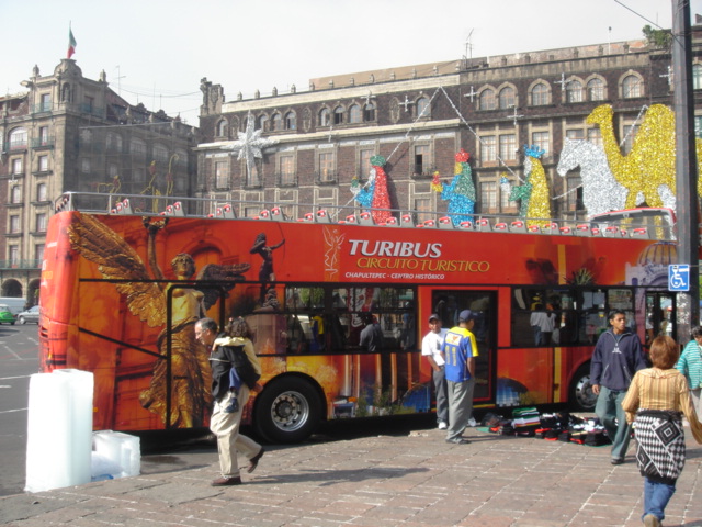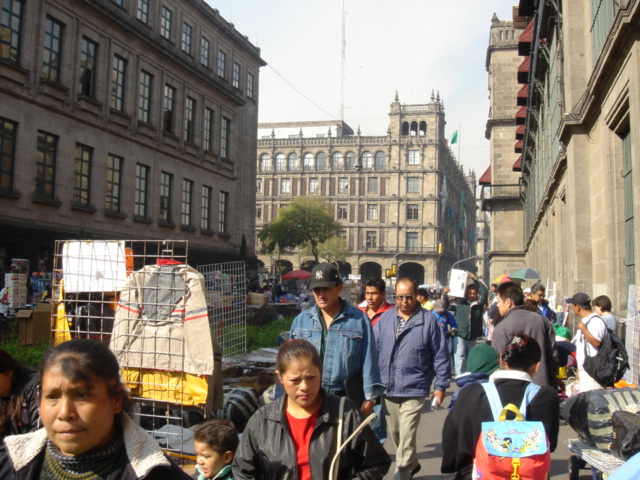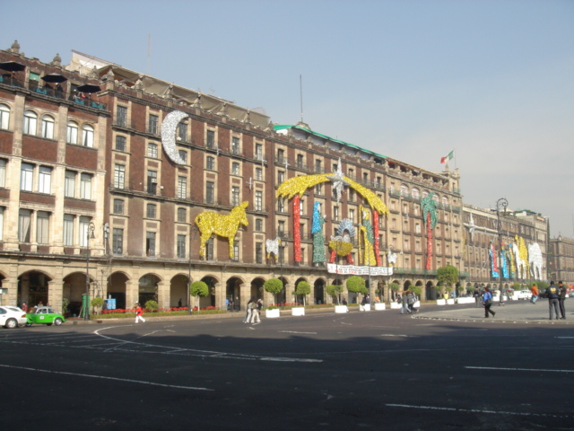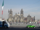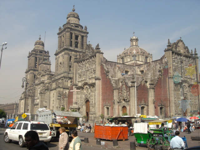 コロニアルな建物が並ぶメキシコシティの中心部ソカロ(Zocalo)は、予想に反して大げさな喧騒もなく、広い広場には古くて巨大な大聖堂が堂々と青い空に向ってそびえていた。