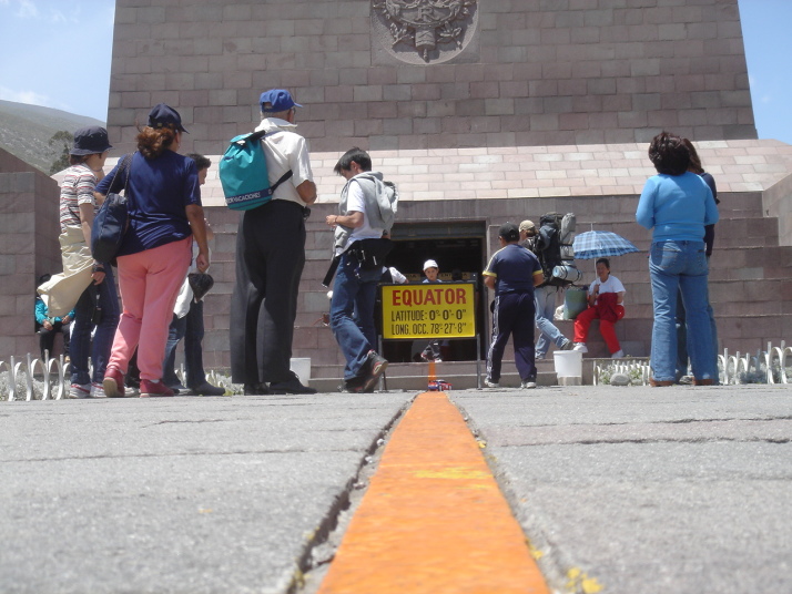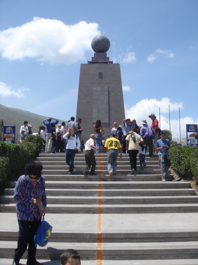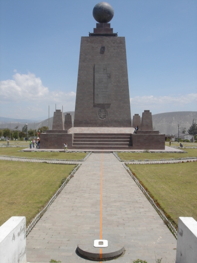 エクアドルの首都キトの北方約22kmに、地球の赤道が通っている。そこにはてっぺんに地球を模した直径4.5mの球を乗せた赤道記念碑が建っていて、観光地化されている。
