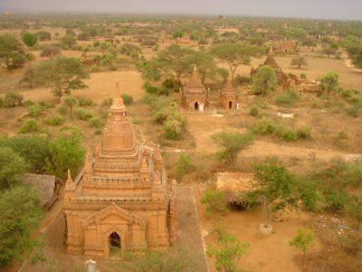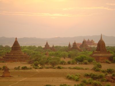 バガンは、11世紀〜13世紀に興隆したパガン王国が栄えた場所で、1044年、ビルマ族による史上初めての統一王国が開かれた土地である。エヤワディ川の岸に広がる乾燥平原に数1000とも言われる仏教建築物が点在し、世界的にも貴重な仏教遺跡である。