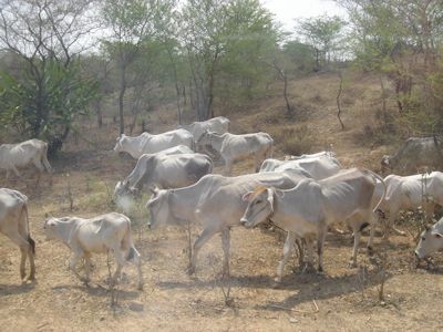 牛の群れが道端を歩いている。どの牛もあばら骨が浮き出てがりがりに痩せている。