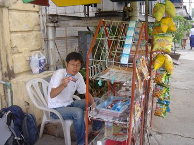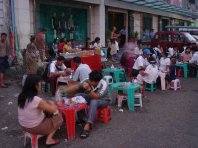 ミャンマーの人たちは、道端の露店でお茶するのが大好き(ヤンゴン)