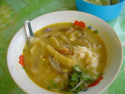 午後2時前くらいに、屋台でモヒンガーを食べる。ニョクマム汁というのか、魚ベースのスープが効いている。結構野菜が入っていた。といってもよく知らない野菜ばかりだが。