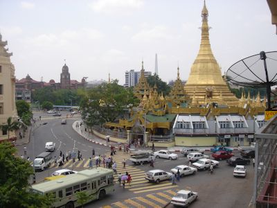 歩道橋の上からスーレーパヤーを望む(ヤンゴン)